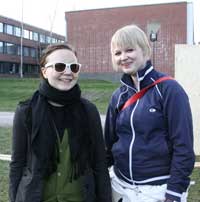 Arkkarit Noora (vas.) ja Pipsa (oik.) olivat myös tulleet katselemaan Telttabileiden menoa. Noora pohti, kumpaakohan jäynäkisan äänestäjät painottavat enemmän:sisältöä vai jäynän esitystapaa, kun äänestävät omaa suosikkiaan. Pipsa oli mukana "Vitun tosikot" -jäynässä, jossa TaiKin ja Kauppakorkeakoulun opiskelijoita opastettiin suunnistamaan tulevalle kampukselleen, Otaniemeen. Pipsan Wappu oli pyörähtänyt käyntiin pykätessä Alvarin aukiolla olevaa arkkareiden 100-vuotis juhlien paviljonkia. Ahkera tyttö!
