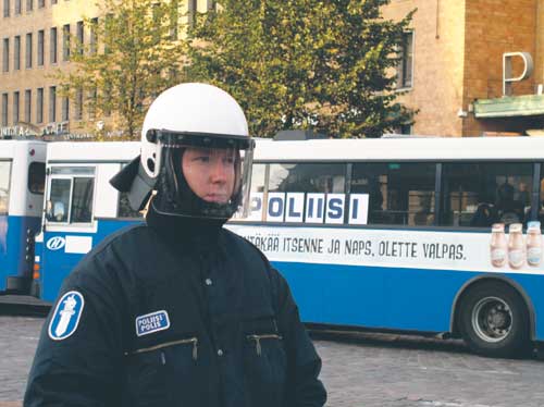 Erityisen vakavalta tilanne ei siis tuntunut, vaikka olikin suomalaisittain tietenkin todella erikoinen. Eniten jännitystä lisäsivät muutamat poliiseja kohti heitetyt pullot. Onneksi heillä oli hyvät suojavarusteet, joten kehenkään heistä ei onneksi varmasti sattunut.