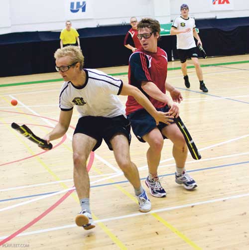 Teksti: Emmi Rautkylä Oranssi kumipallo irtoaa hurjalla vauhdilla käden mittaisesta muovikourusta ja läimähtää keltaiseen maaliympyrään. Leet-O-Ravien Mareena Soininen kiljuu innosta. Hän on juuri tehnyt leetin historian ensimmäisen virallisen maalin. Maailman ensimmäinen leet-turnaus järjestettiin Helsingin Urheilutalolla 6.-7.9.2008. Leet Helsinki Cup 2008:n mestaruudesta oli saapunut mittelemään yhteensä 19 uunituoretta, yhden kesän verran lajia harjoitellutta joukkuetta. Rennosta tunnelmasta huolimatta ei jäänyt epäselväksi, että pelaamaan oli tultu tosissaan. Leet Helsinki Cupissa tehtiin kaikkiaan 196 maalia. Niistä 17 ja samalla pistepörssin voiton kirjasi nimiinsä LC Raimon Joonas Pulkkinen. LC Raimo oli Kaivopuistossa pelattujen harjoituspelien myötä noussut turnauksen ennakkosuosikiksi ja pojat raivasivatkin tiensä finaaliin ottaen murskavoiton LC Mellonista lukemilla 11-1. Finaalissa he kohtasivat kuitenkin parempansa, kun Band of Brothers taidolla ja tarkkuudella iski loppulukemiksi 7-5. Vauhtia finaalista ei ainakaan puuttunut ja katsojat saivat haukkoa henkeään koko 6 x 5 minuuttia. "Yhteinen jalkapallohistoria ja voimakas voitontahto vei meidät voittoon", Band of Brothersin Jaakko Pelli analysoi lopputulosta. "Tiukka ja tasainen taistelu LC Raimon kanssa sai voiton tuntumaan entistä paremmalta". Myös pronssista taisteltiin tulisesti ja se irtosi lopulta varttuneempaa ikäluokkaa edustaville Start Helsinkiläisille maalein 3-2. LC Mellon ei kuitenkaan joutunut poistumaan turnauksesta tyhjin käsin, vaan vastaanotti ansaitun palkinnon tyylikkyydestään punaisissa minishortseissaan ja itse värjäämissä meloni-topeissaan. Kaiken kaikkiaan turnaus oli menestys ja varma startti monen leet-harrastukselle. "Tulemme varmasti pelaamaan jollain kokoonpanolla jatkossakin", voittajajoukkueesta kuuluu. "Tästä on hyvä jatkaa kohti ensi vuonna Yhdysvalloissa järjestettävää mestaruusturnausta", suunnittelee leetin valmentajiin ja turnauksen järjestäjiin kuuluva Lauri Leminen tyytyväisenä. Leet lennättää palloaTeksti: Emmi Rautkylä Leet on laji, joka sai alkunsa parin suomalaisen nuoren miehen päässä viitisen vuotta sitten. Pahviputkella ja golfpallolla kopitteleminen johti ajatukseen uudesta pelistä, jonka kehittymistä voisi seurata koko maailma. Muutaman vuoden kuluessa säännöt ja pelivälineet muokkautuivat lajiin sopiviksi. Nyt leet on totta, ja kenellä tahansa on mahdollisuus kehittyä sen ensimmäiseksi todelliseksi taituriksi. Leet muistuttaa monia jo olemassa olevia joukkuepelejä, ja perusajatuksena onkin kerätä pisteitä tekemällä maaleja. Leetiä pelataan muovisella, kourumaisella mailalla sekä kumisella, pingis- tai golfpallon kokoisella pallolla. Monelle laji tuo mieleen koripallon tai haavipallon, mutta erilaisten pelivälineiden lisäksi leet on maustettu muutamalla erikoisella säännöllä. Näitä ovat esimerkiksi "mental shot" eli vapaaheitto keskiympyrästä maaliin sekä "kuuma pelaaja" eli pelaajan kahdesta perättäisestä maalista ansaitsema lisäpiste. Pelaajat kuljettavat palloa syöttelemällä toisilleen. Palloa saa pitää hallussaan enintään 5 sekuntia kerrallaan, joten pallo ja pelaajat ovat lähes koko ajan liikkeessä. Syöttö voi lähteä ala- tai yläkautta. Sama pätee kiinniottamiseen sekä maaliheittoihin. Varsinaisessa leet-ottelussa maalit ovat ympyröitä, jotka sijoitetaan kentän päätyseiniin noin 5,2 metrin korkeuteen. Käytännössä maalien sijainti ja kentän koko kuitenkin määräytyvät sen mukaan, missä peliä pelataan. Laji kun sopii pelattavaksi myös puistoissa ja hietikoilla soveltavilla street leet -säännöillä. Leetiä voi pelata niin tyttö-, poika- kuin sekajengein ikään katsomatta. Kuntoa lajissa toki vaaditaan, koska ottelut ovat nopeatempoisia ja tavoitteena on suoriutua peleistä, jotka koostuvat kolmesta 15 minuutin erästä. "Leetiä voivat pelata kaikki lapsesta vaariin, mutta huippupelaajalta vaaditaan ketteryyttä ja kehonhallintaa", kuvailee Coach Flanagan alias Robert Örthén, leetin päävalmentaja ja yksi idean isistä. "Tällä hetkellä levitämme leetin ilosanomaa maailmalla ja toivomme, että viiden vuoden päästä jokainen tietää leetin olevan Suomessa kehitetty kilpalaji." www.playleet.com Päivitetty 19.9.2008 tulostusversio |